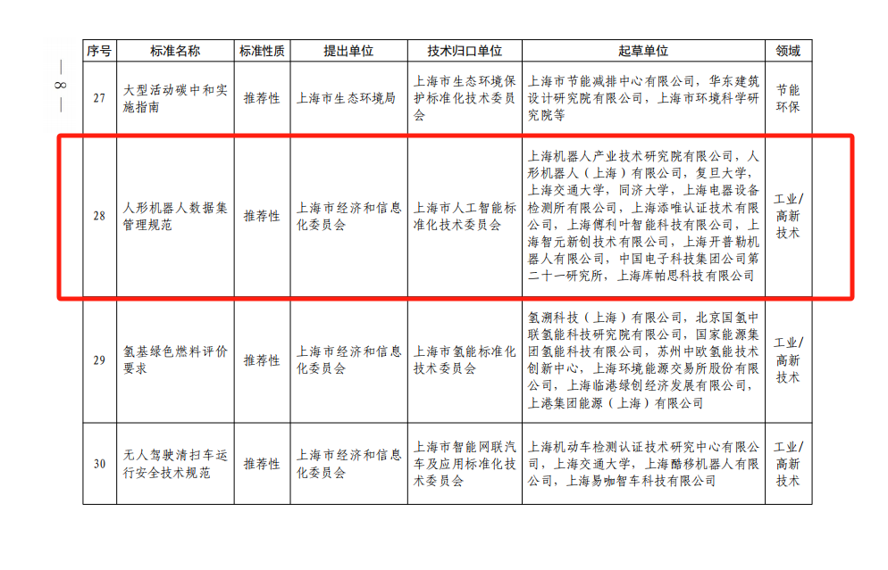 该标准由上海市人工智能标准化技术委员会归口,提出单位为上海市经济和信息化委员会,起草单位由z6.com尊龙(中国)机器人有限公司官网有限公司,人形机器人(上海)有限公司等。