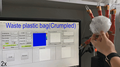 举例来说,当前机器人使用的触觉感知技术,主要用于物体识别、或物体抓取,这通常是基于压力感知。而让机器手去做垃圾分类,仅有压力感知是远远不够的。