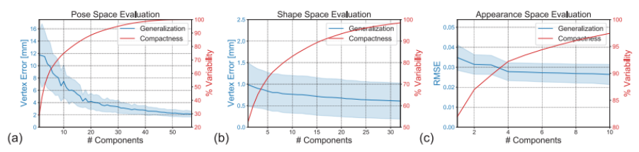 该研究从 pose、shape 和 appearance 三个维度验证了模型的 compactness 和泛化(generalization)能力。