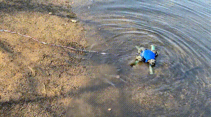 这些变化使机器龟的肢体能够在有利于行走的圆柱形几何形状,和有利于游泳的平鳍几何形状之间来回切换,进行适应性变形。在真正下水测试时,机器龟通过行走和匍匐前进的方式靠近水面,到达水域后,机器龟就将腿变成鳍状肢,使其能够以基于升力和阻力的水上步态进行畅游。